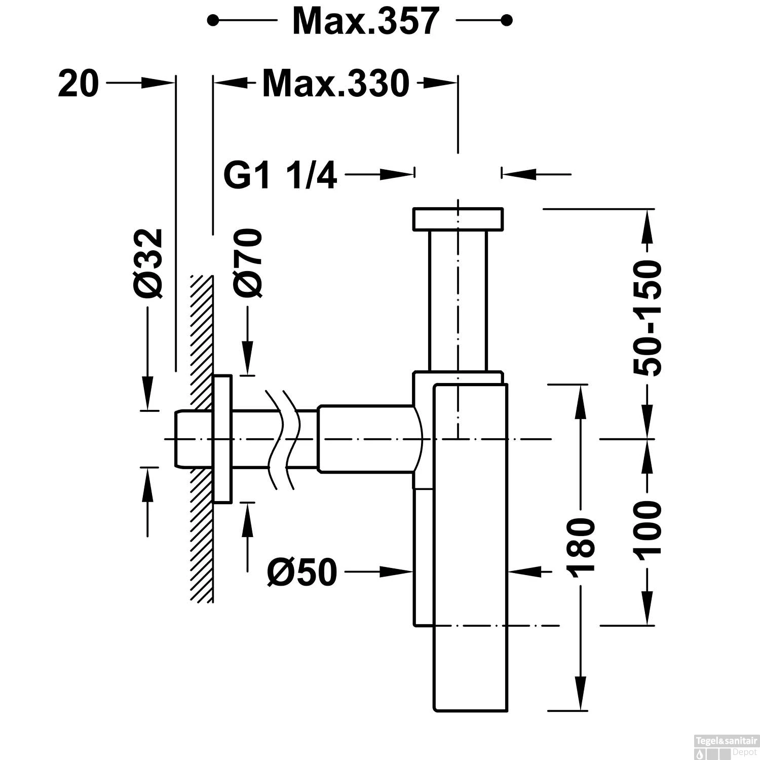 Specificaties Sifon Tres Complementos Met Mantel Rond Mat Zwart: