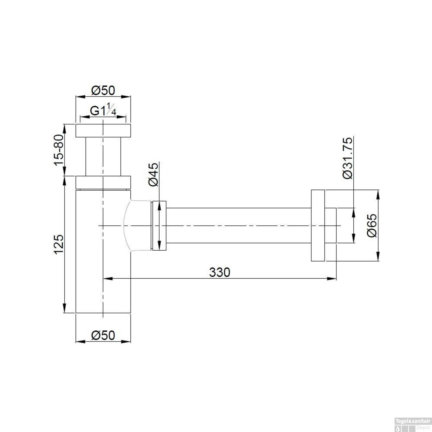 Specificaties Sifon Luxe Muurbuis met Roset 5/4″ Mat-zwart Wiesbaden Star: