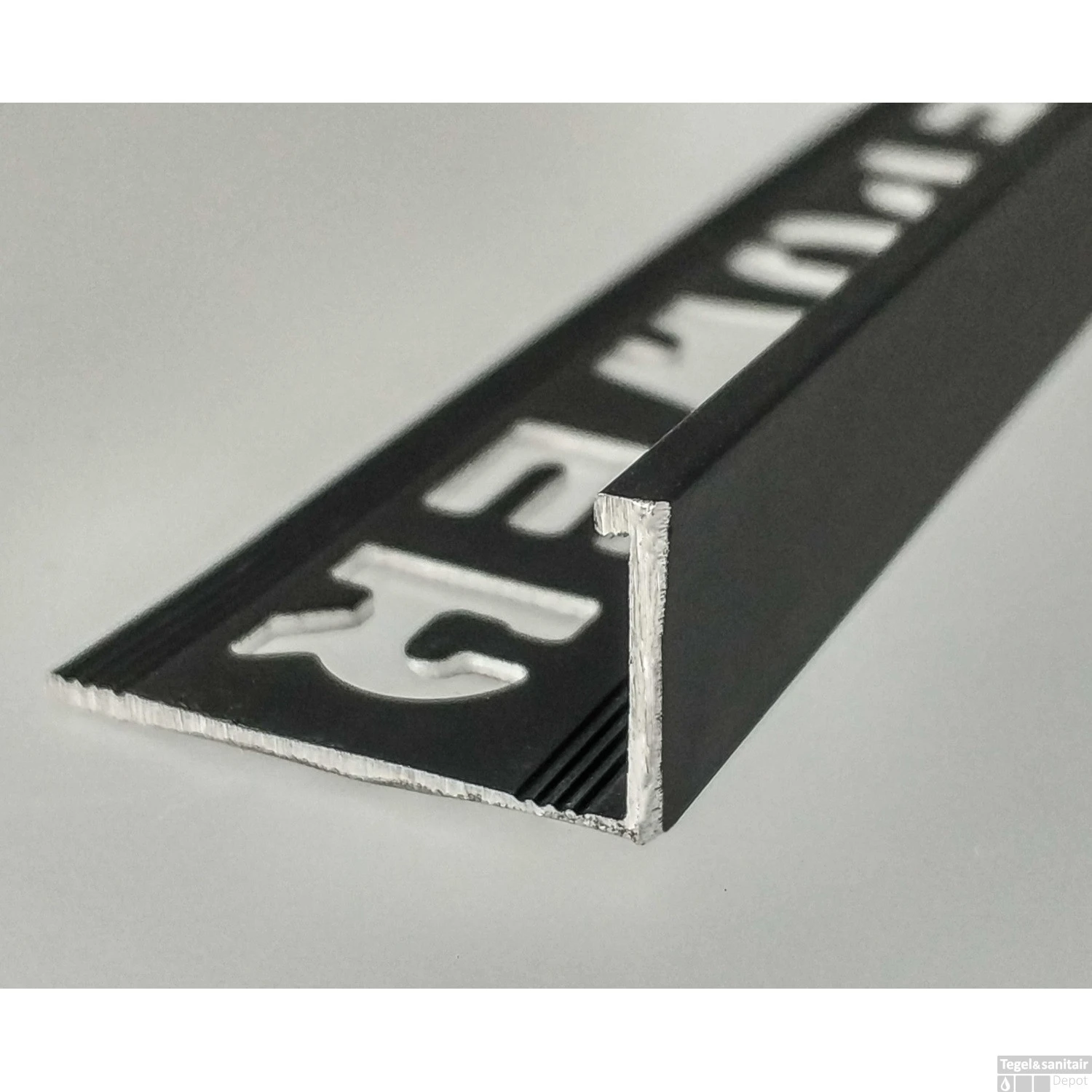 Het tegelprofiel van LYNOX is een rechthoekige tegelafwerking dat een meer dan uitstekende randbescherming biedt voor buitenhoeken van betegelde wanden. Het zichtbare gedeelte van het tegelprofiel vormt een rechte rand voor de afdekking. Het profiel is mat zwart gecoat en heeft een hoogte van 6 mm en een lengte van 2700 mm (2,7 meter). Het artikel is ook verkrijgbaar in hoogtes van 8 mm, 10 mm, 11 mm en 12,5 mm.