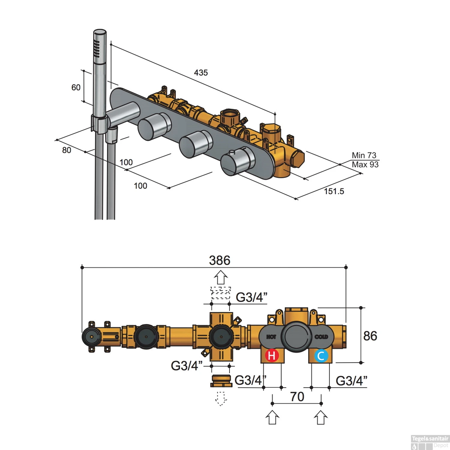 Specificaties Thermostaat Badkraan Hotbath Buddy Inbouw 2-stop Zonder Uitloop Chroom: