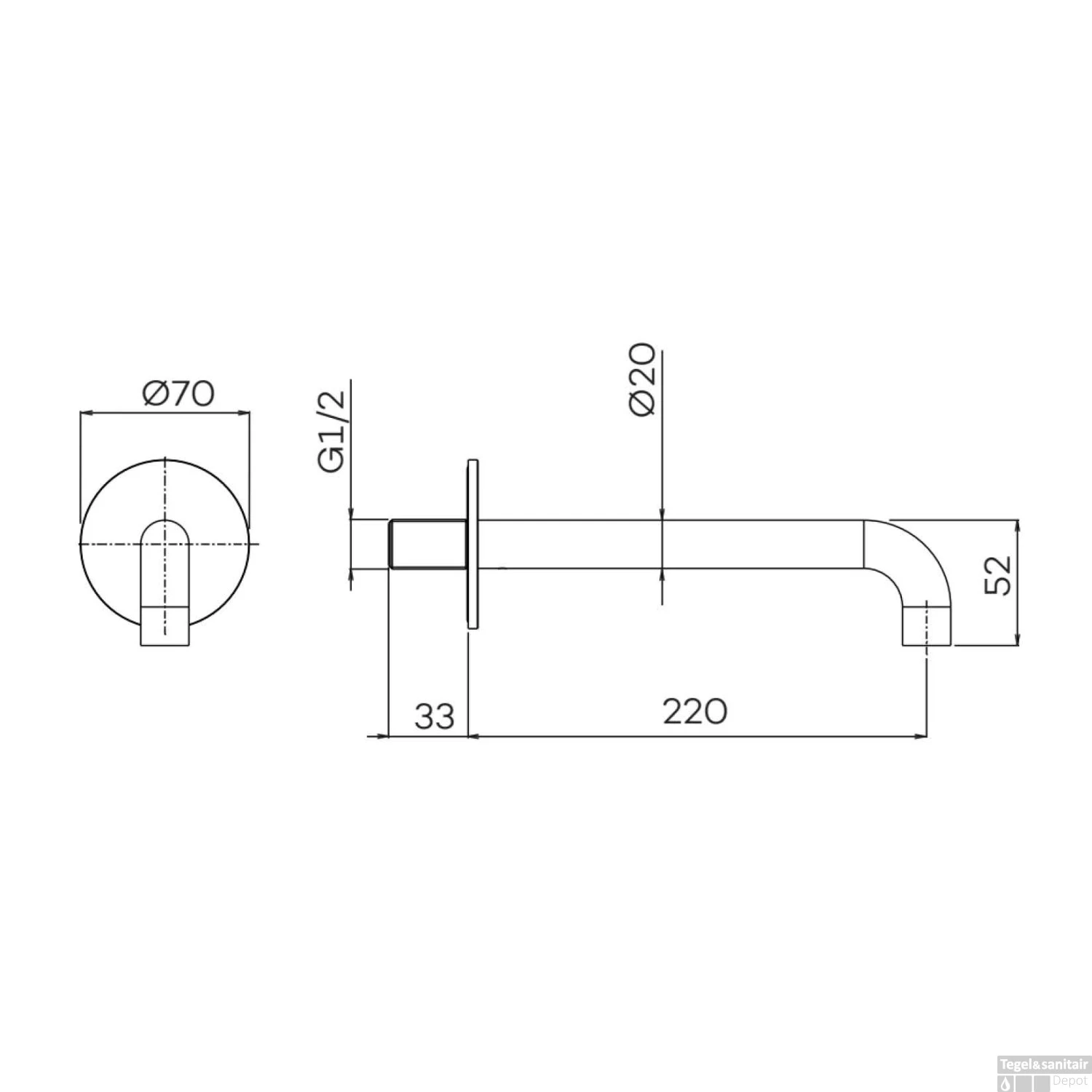 - Lengte uitloop: 22 cm