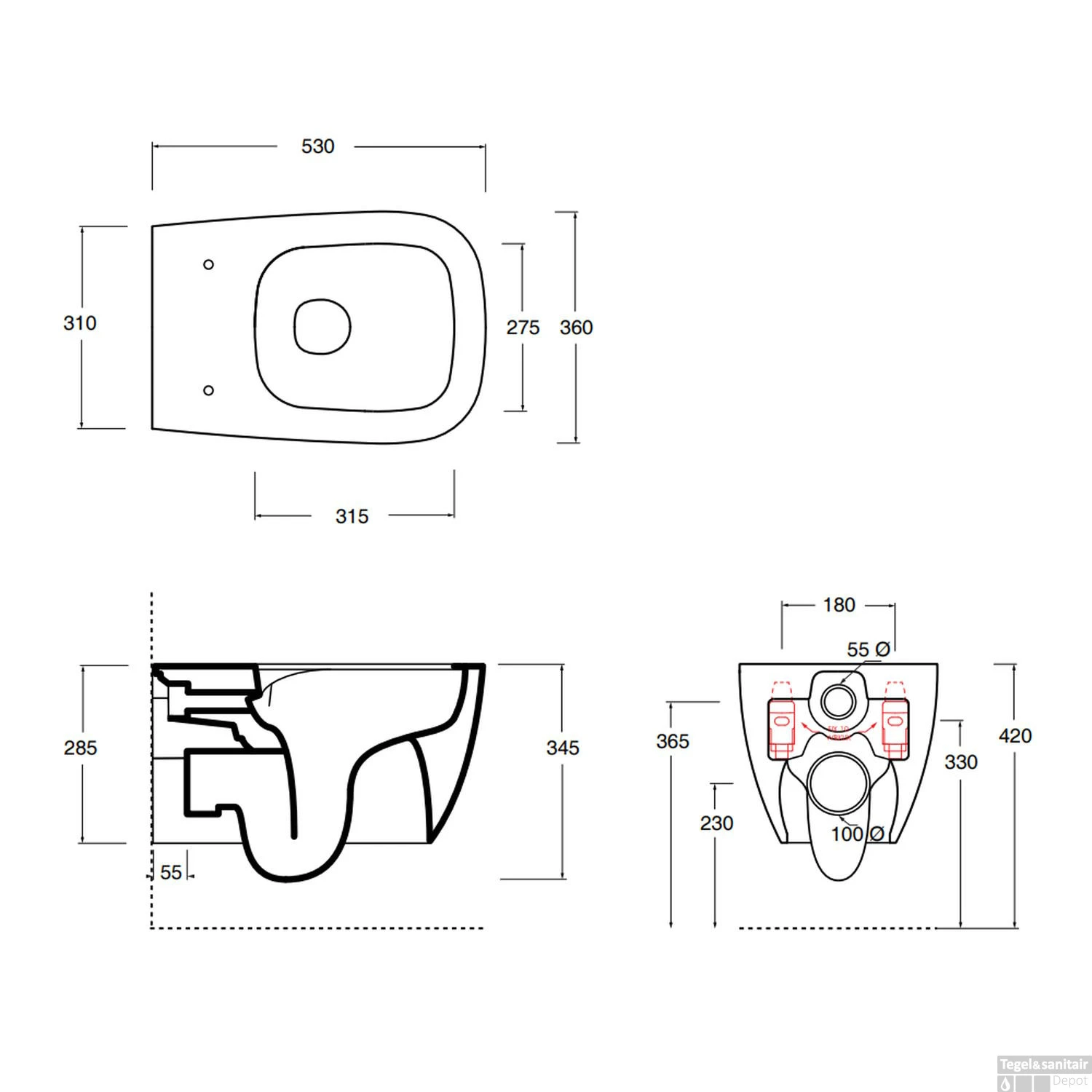 Dit wandcloset heeft een afgeronde rechthoekige vorm en is mat wit van kleur. Het toilet wordt geleverd inclusief speciale ophangset. Let op: dit model wordt exclusief toiletzitting geleverd. Deze kunt u onder aan de pagina bij bestellen.