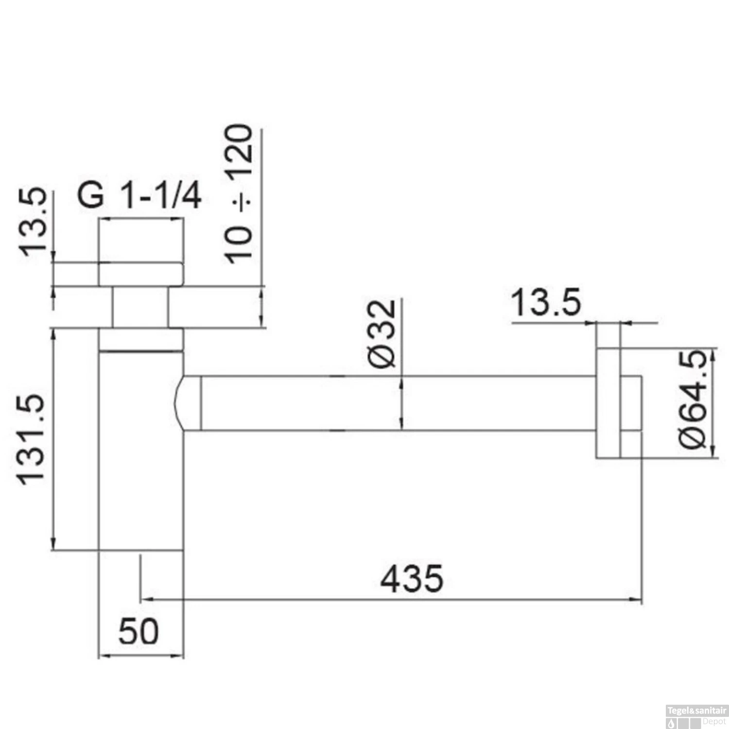 - Afmeting Afvoergat: 1 1/4″