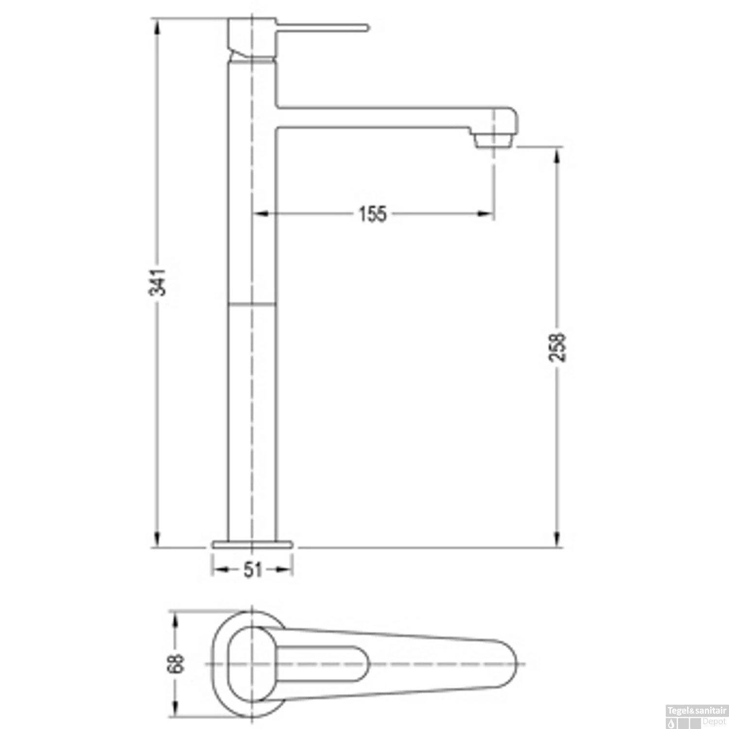 - Hoogte uitloop: 25,8 cm