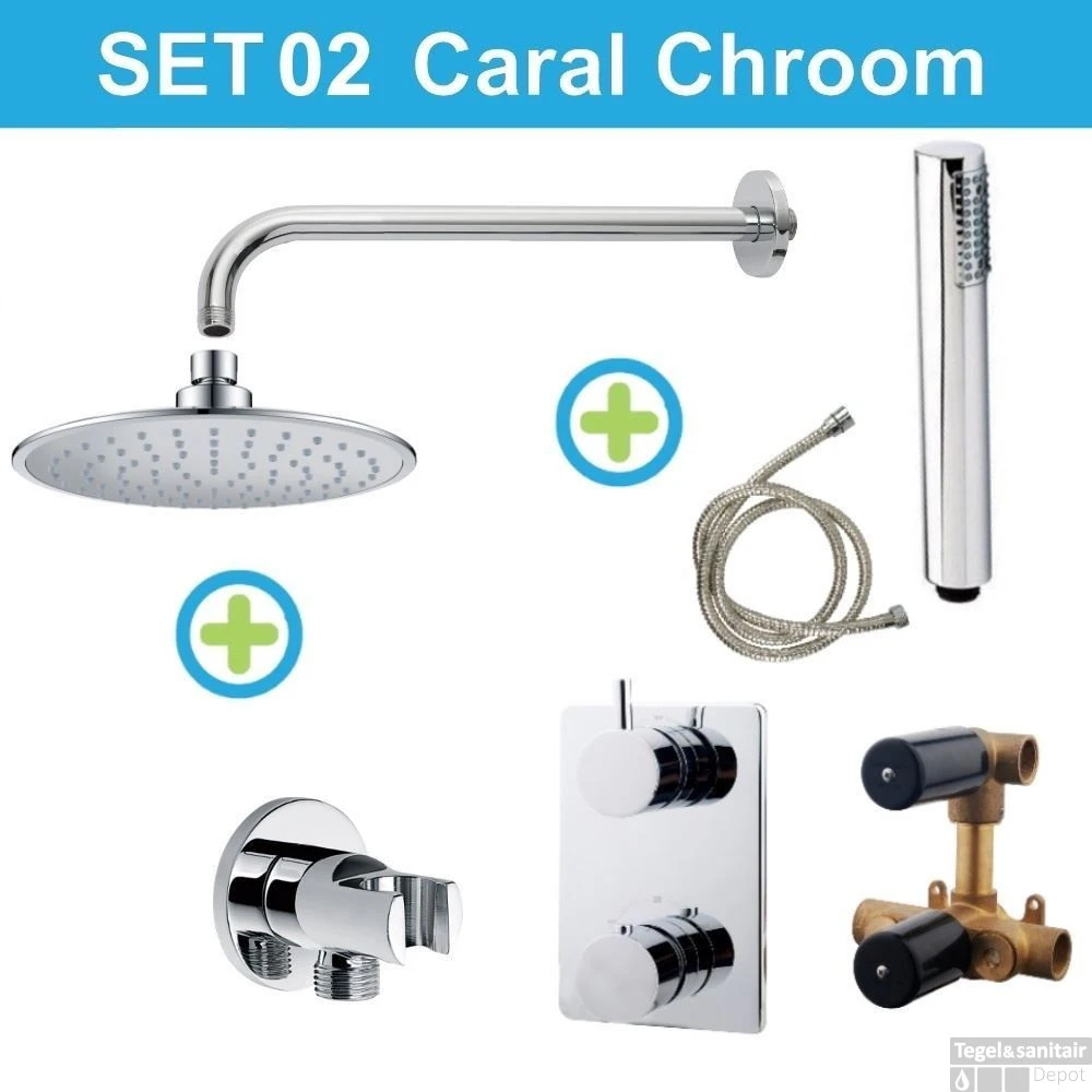 - 1 x Caral afbouwdeel 2-wegs douchethermostaat rechthoek